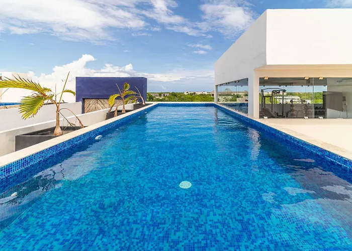 A pousada 2 Bd With Balcony Gym Rooftop Pool Tulum está localizada a uma distância aproximada de 25 minutos a pé de Cenote Calavera e permite aos hóspedes desfrutar de bilhar.